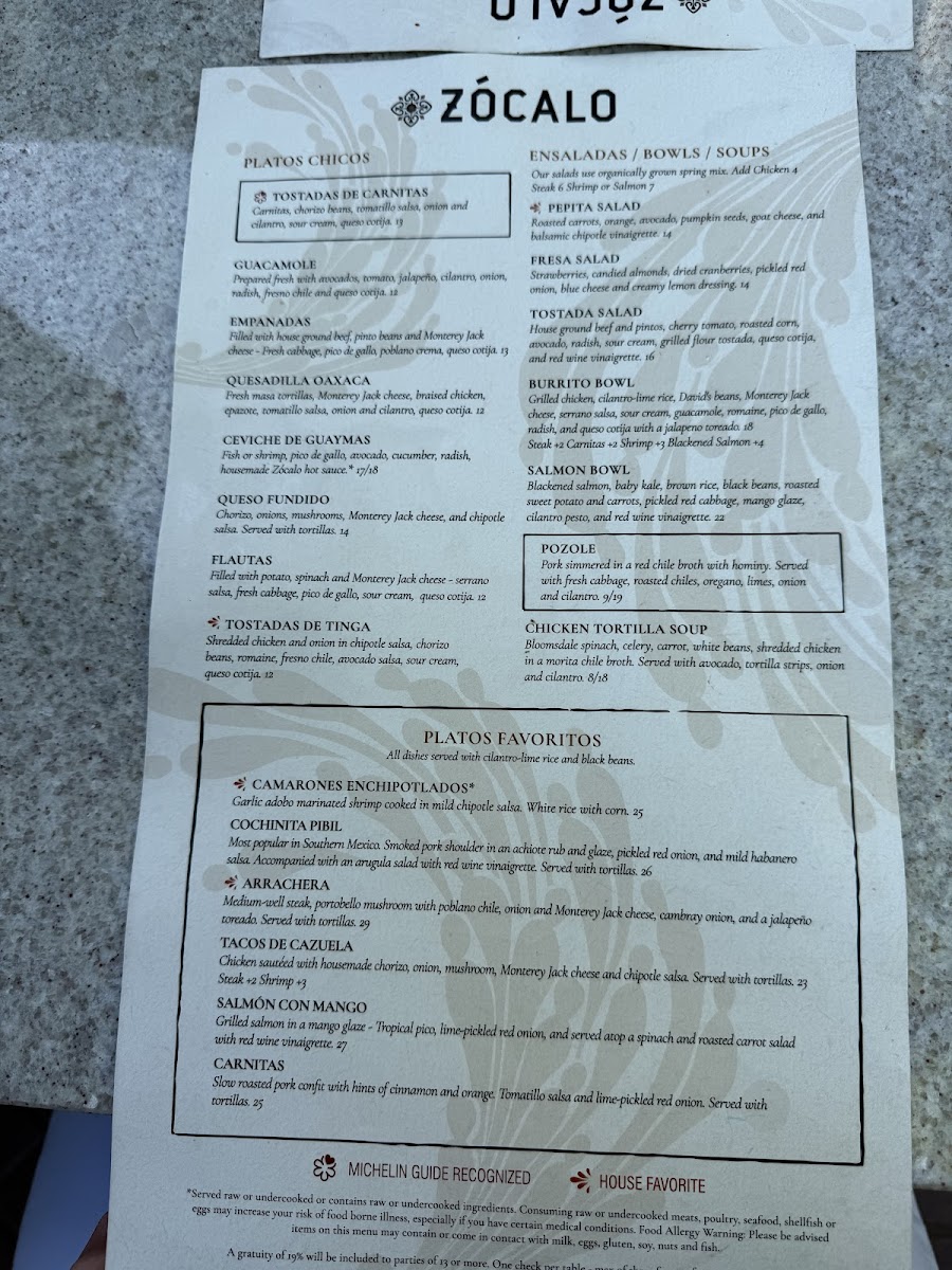 The culinary offerings at Zócalo are a celebration of modern Mexican cuisine, showcasing flavorful dishes that are sure to tantalize your taste buds. For families visiting with children, the Kids’ Menu is a delightful range of options, featuring favorites like the Kids Burrito, Kids Enchilada, and Kids Quesadilla, all priced at just $8.00. Opt for one of the enticing combinations, such as the Kid's Taco Suave & Churro for just $9.00, which pairs perfectly with the sweet touch of churros—guaranteed to spark joy in little ones!